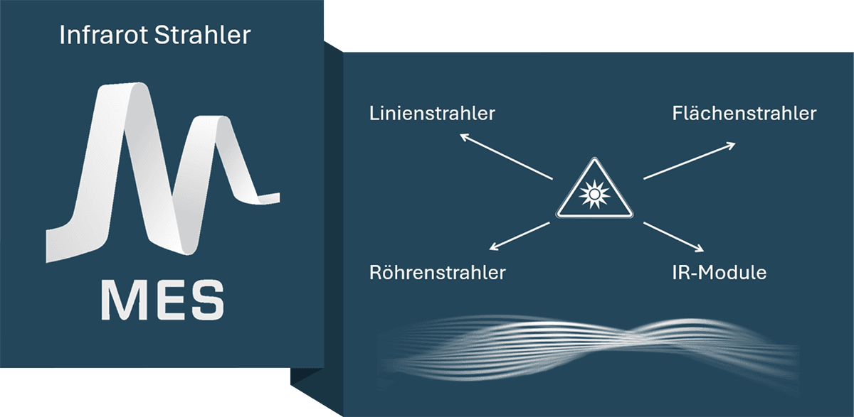 Die MES Infrarot-Strahler bieten Ihnen, in verschiedenen Ausführungen, mit verschiedenen Konfigurationsmöglichkeiten, die optimale und individualisierte Lösung für Ihre Anwendungs- und Verfahrenstechnik an.