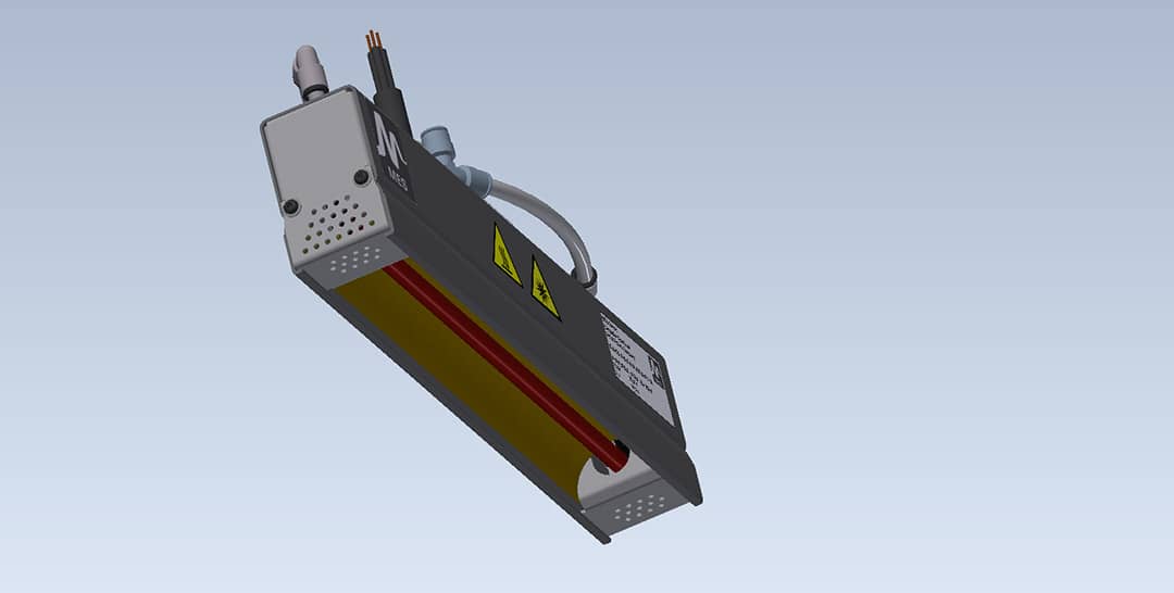 MES lineIR CP/CF sind geeignet zum Erwärmen von Kanten-, Biege- und Verbindungsbereichen. Dabei wird durch Infrarotstrahlung eine Linie erzeugt, die je nach Abstand zum Produkt unterschiedlich breit ist.