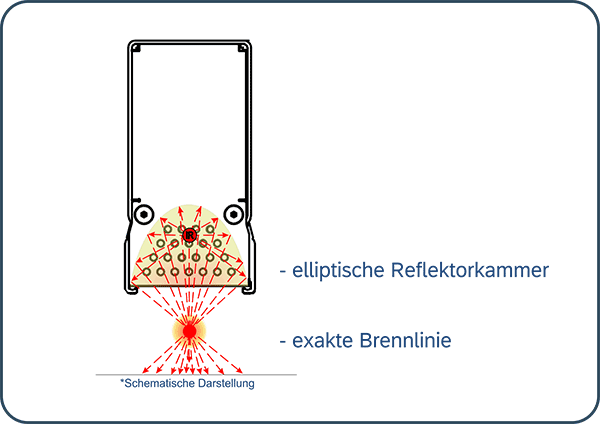 - Elliptische Reflektorkammer mit austauschbarer Reflektorfolie